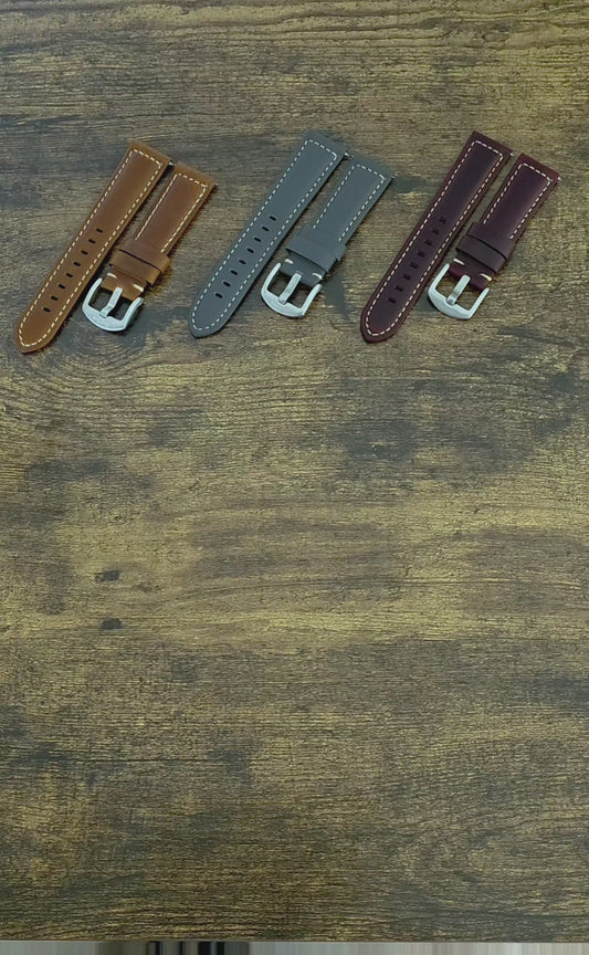 Full Grain Leather Padded Watch Strap 20mm 22mm Pearl Grey