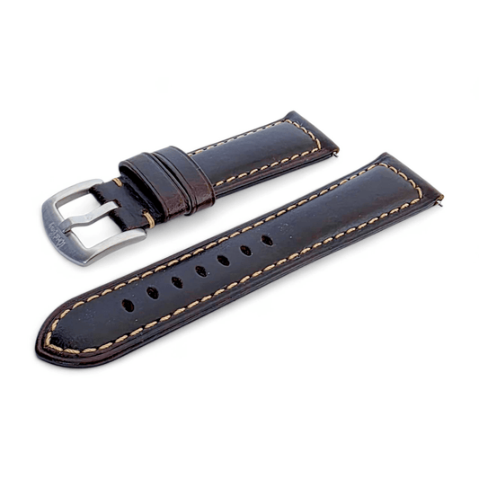Full Grain Leather Padded Watch Strap 20mm 22mm Dark Brown