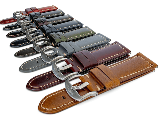 Full Grain Leather Padded Watch Strap 20mm 22mm Burgundy