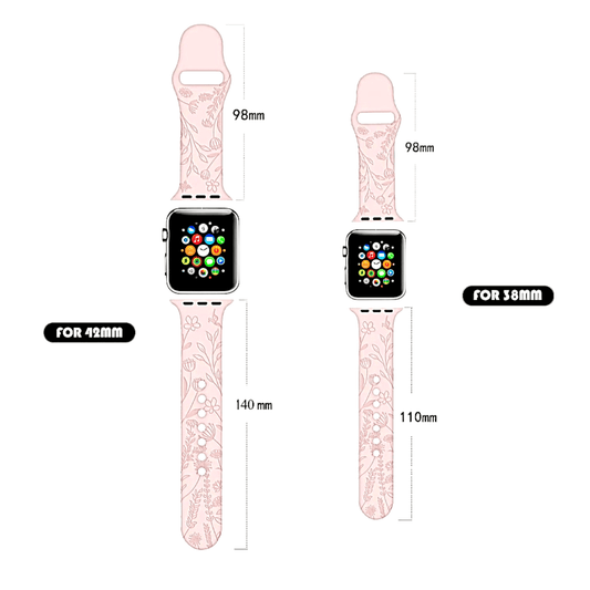 Floral Patterned Silicone Watch Strap For Apple Watch Pink