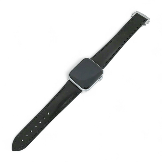 French Novanappa Leather Watch Strap With Deployant For Apple Watch Black