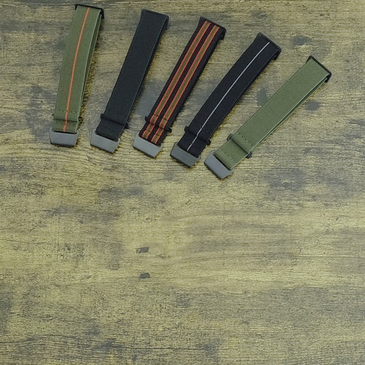 French Navy Marine Nationale Straps Parachute military elastic nylon watch bands. Available in sizes 18mm, 20mm and 22mm.