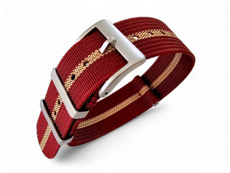 Marine Nationale Watch Strap 20mm 22mm Maroon Khaki Stripe