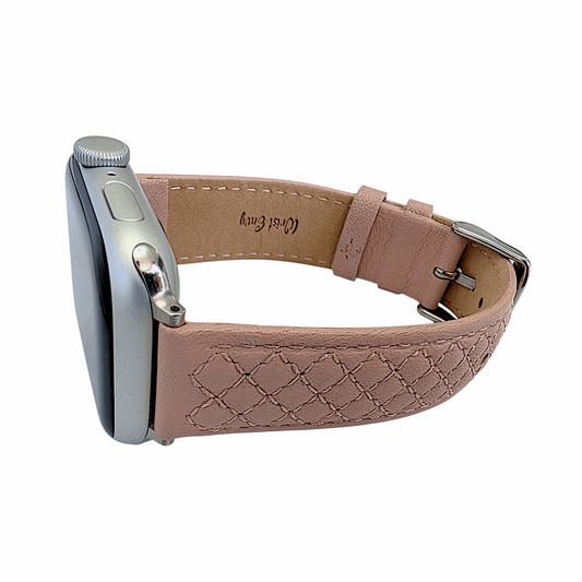 Luxury Italian Leather Diamond Stitch Watch Strap For Apple IWatch Dusty Pink