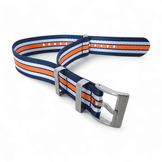 NATO watch straps also known as G10 straps have a history dating back to 1973 when first issued by the British Ministry of Defence. The name “NATO” comes from the NATO Stock Number (NSN) system used to standardise and order these military essentials. Designed for soldiers these straps offer security, durability and comfort in tough conditions. Their reliability and style have made them popular far beyond defence. Today NATO watch straps come in many colours and patterns—from classic military greens and khakis to bold blues, oranges and country flag designs. Whether for a special occasion or everyday wear the NATO strap is a timeless choice.