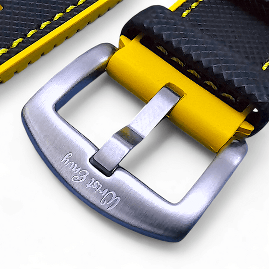 Sailcloth Watch Strap FKM Rubber Black Yellow 20mm 21mm 22mm