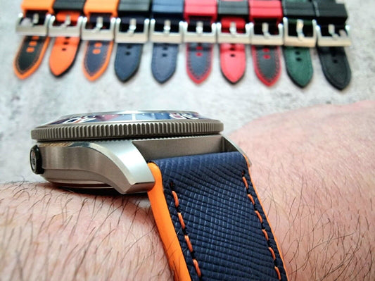 Hybrid Sailcloth FKM Rubber Watch Strap Divers Blue Orange 20mm 21mm 22mm