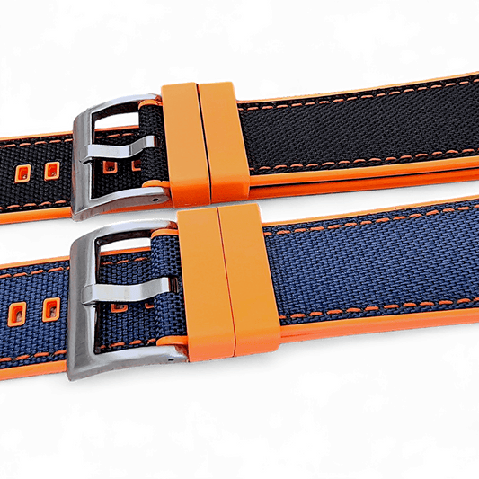 Hybrid Sailcloth Canvas & FKM Rubber Watch Strap 20mm 22mm Orange & Blue