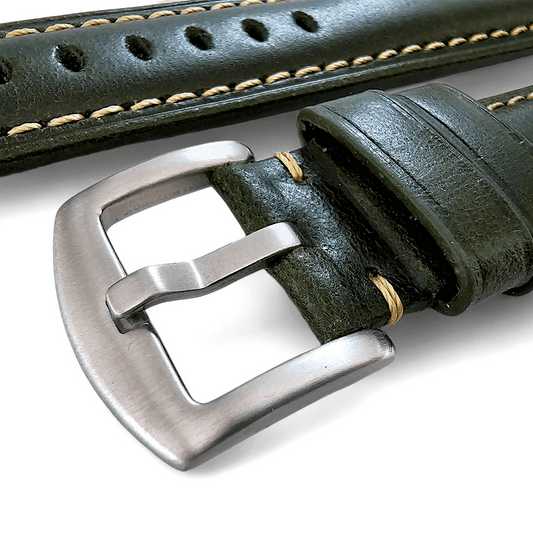 Vintage Cracked Leather Watch Strap Band Padded Two Piece Dark Green 20mm 22mm