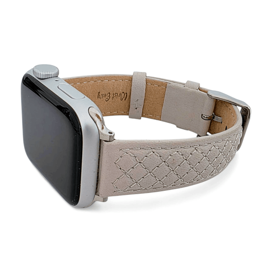 Luxury Italian Leather Diamond Stitch Watch Strap For Apple Watch Grey