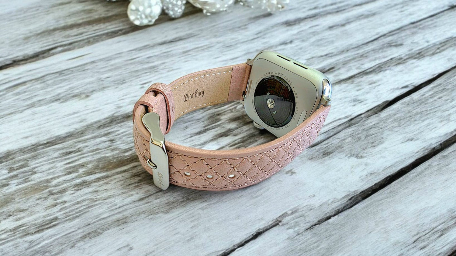- Leather Apple Watch Straps: Looking for sophistication? Our Apple Watch band ladies designs in leather feature vintage and Horween options. These straps age beautifully, developing a unique patina over time.