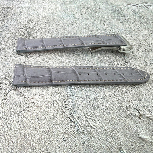 Crocodile Embossed Leather Deployant Strap - Custom Made to Order (Grey)
