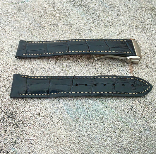Crocodile Embossed Leather Deployant Strap - Custom Made to Order (Navy)