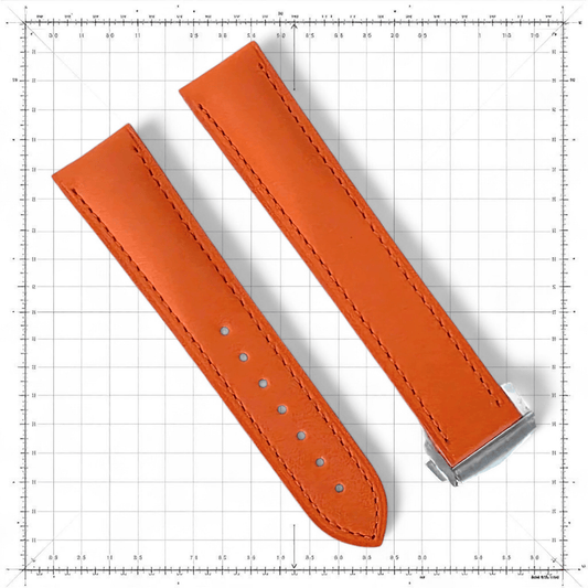 Barenia Leather Deployant Watch Strap Custom Made to Order (Orange)