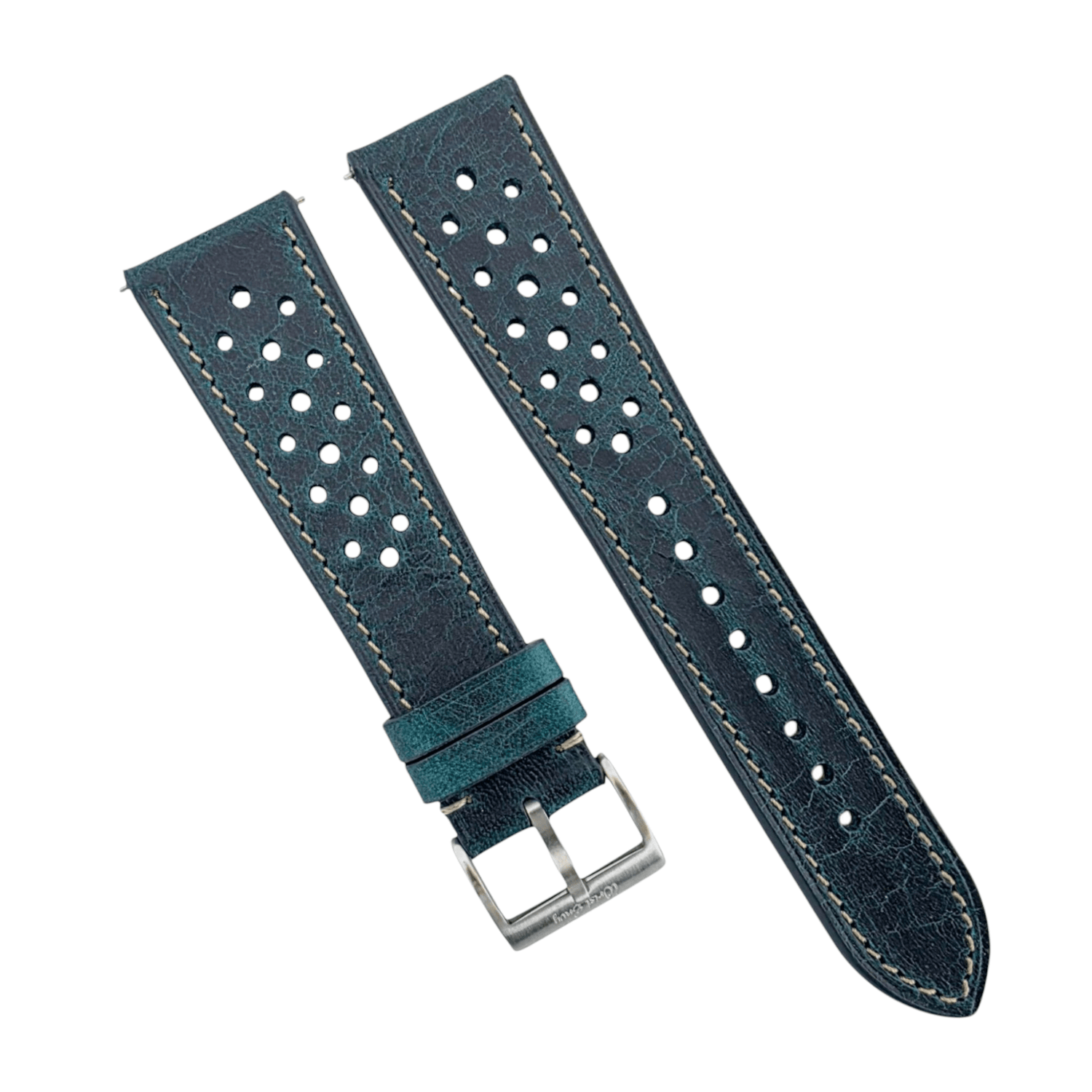 Badalassi Carlo Rallye-Uhrenarmband aus echtem Vollnarbenleder, 20 mm/22 mm, Dunkelblaugrün