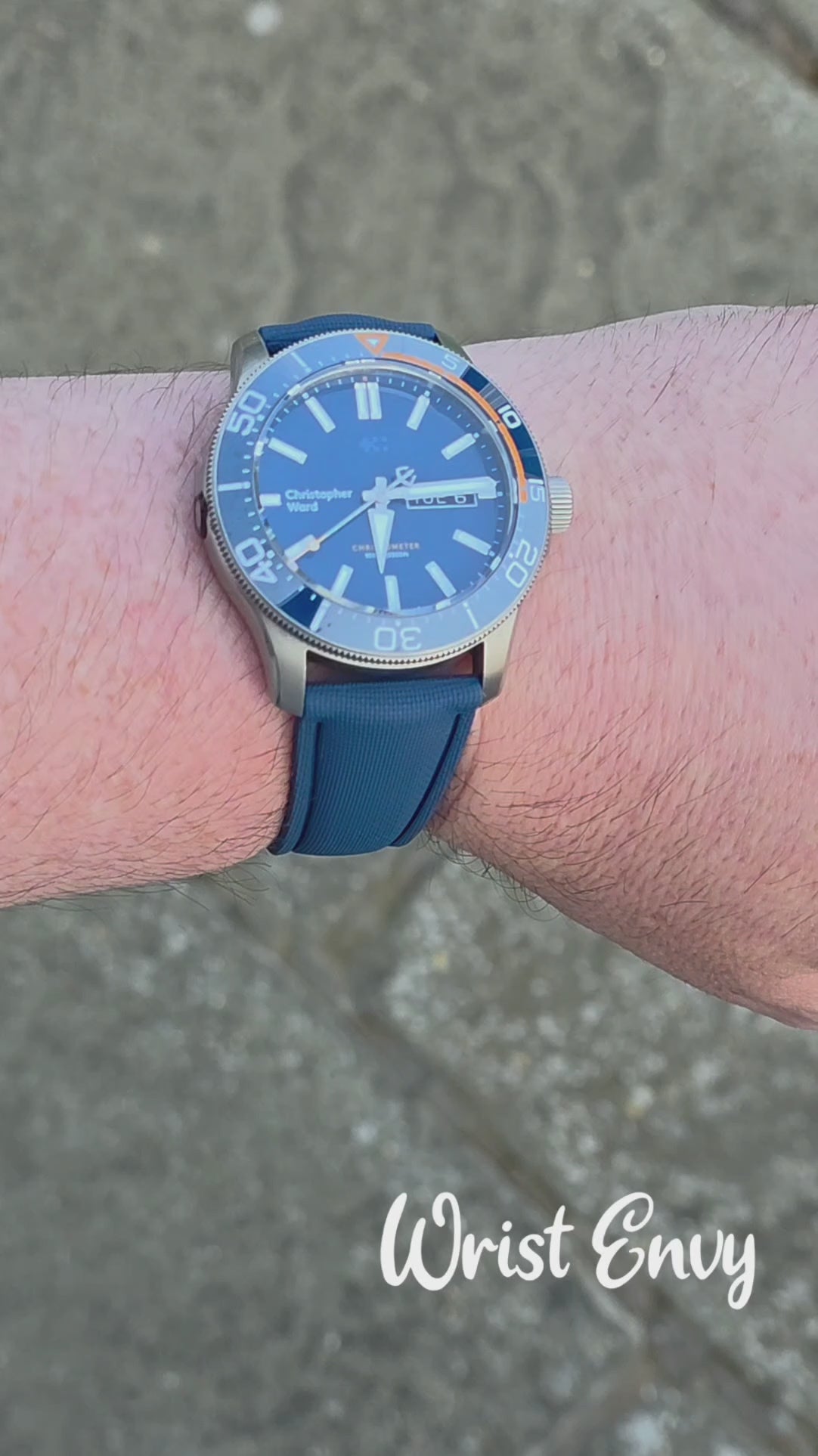 Made from FKM rubber, this strap can withstand sun, saltwater and extreme temperatures without losing its flexibility or finish. A moulded sailcloth-style texture gives it a classy look, blending the ruggedness of vintage military straps with a modern feel.