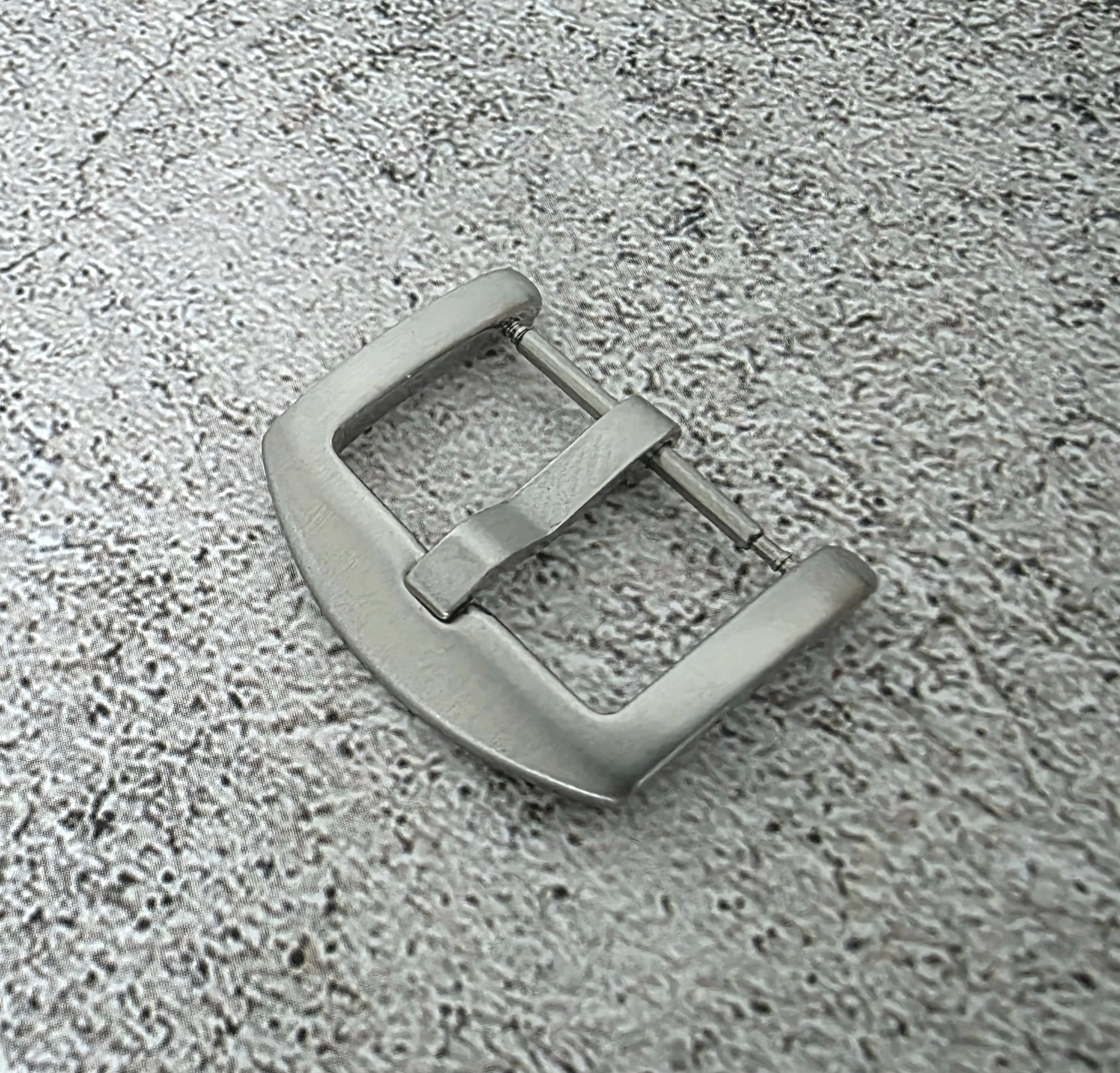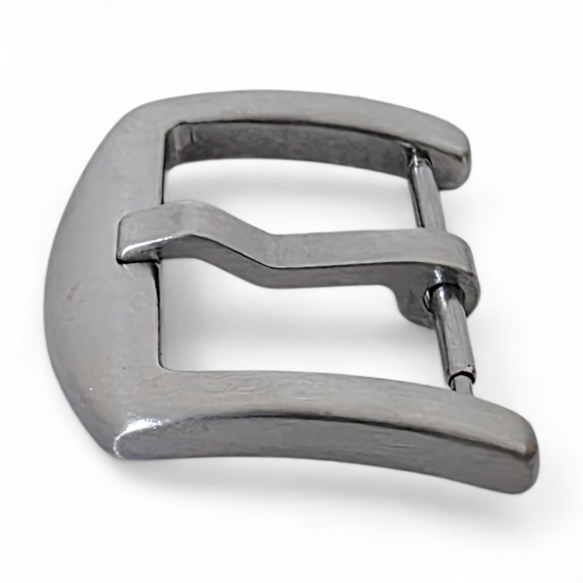 Watch strap replacement buckle in a classic style available in brushed stainless steel. These buckles are a sports style and perfect for rubber, nylon and leather watch straps.