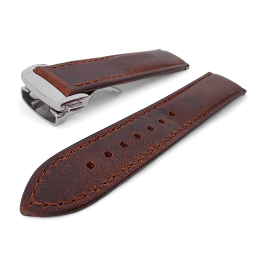 Full Grain Leather Watch Strap Deployment Clasp 18mm 20mm Dark Brown
