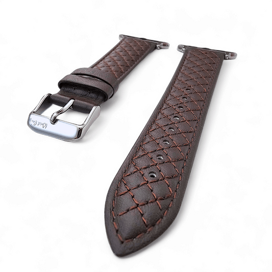 Mens Italian Leather Diamond Stitch Watch Strap For Apple Watch Dark Brown