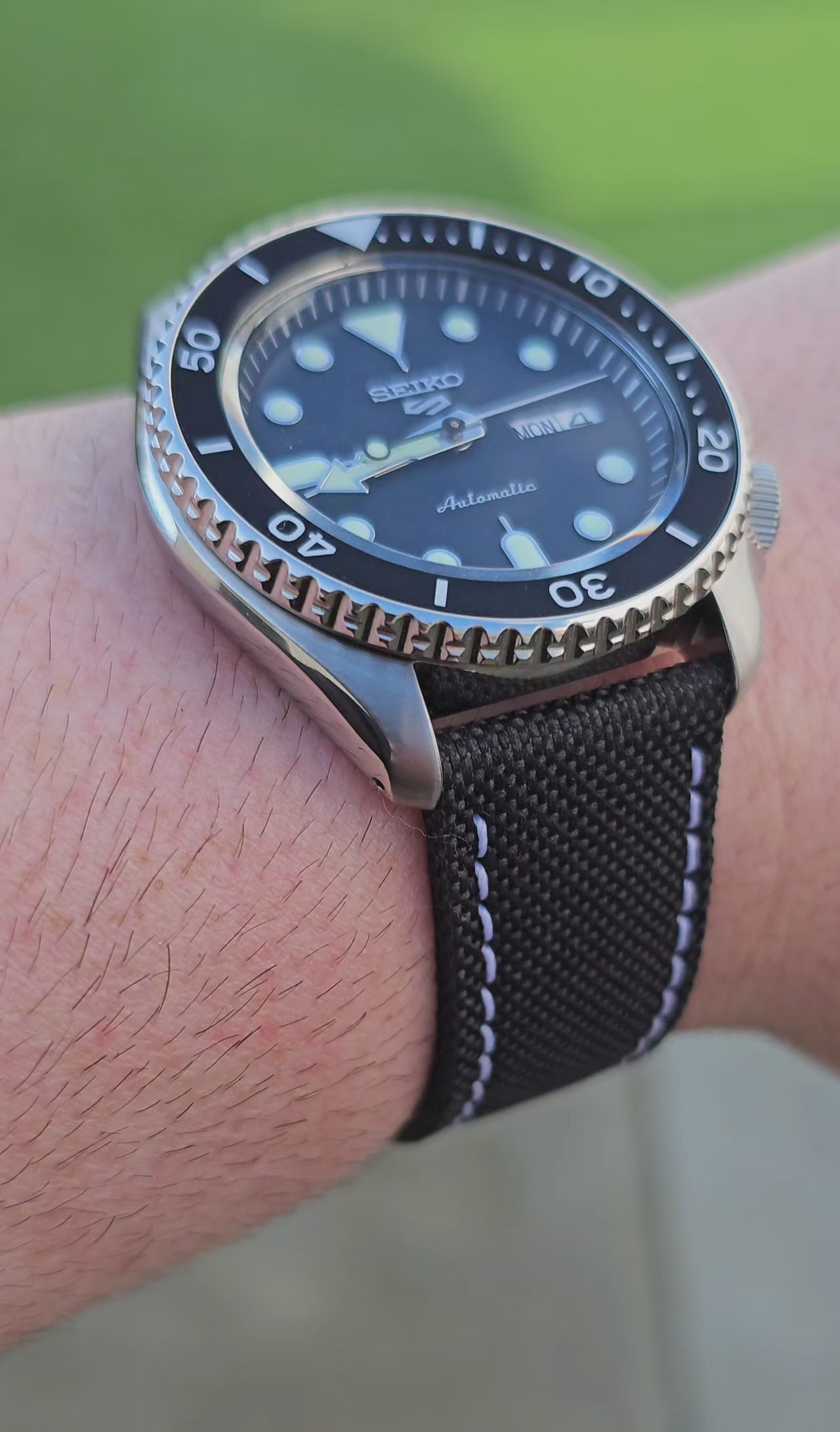 Découvrez notre bracelet de montre de remplacement en toile haut de gamme, méticuleusement fabriqué en noir avec une variété d' options de couture.
