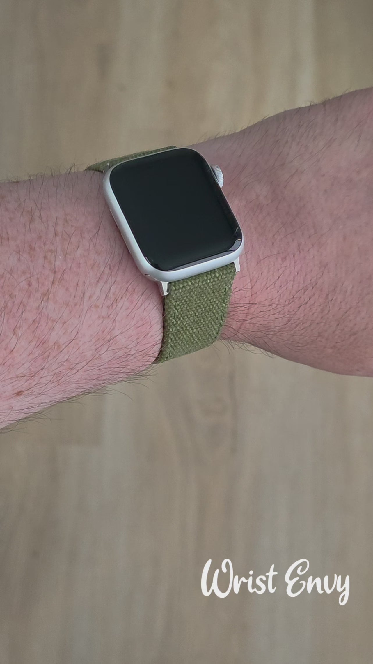 Upgrade your watch with our Canvas Apple Watch Strap Band, only available at Wrist Envy in the UK. Handmade by skilled craftsmen, each strap is made from top quality canvas with a soft leather backing for comfort and we have added additional leather stitched around the pin holes to reduce wear and give added durability. Perfect for casual and everyday wear.