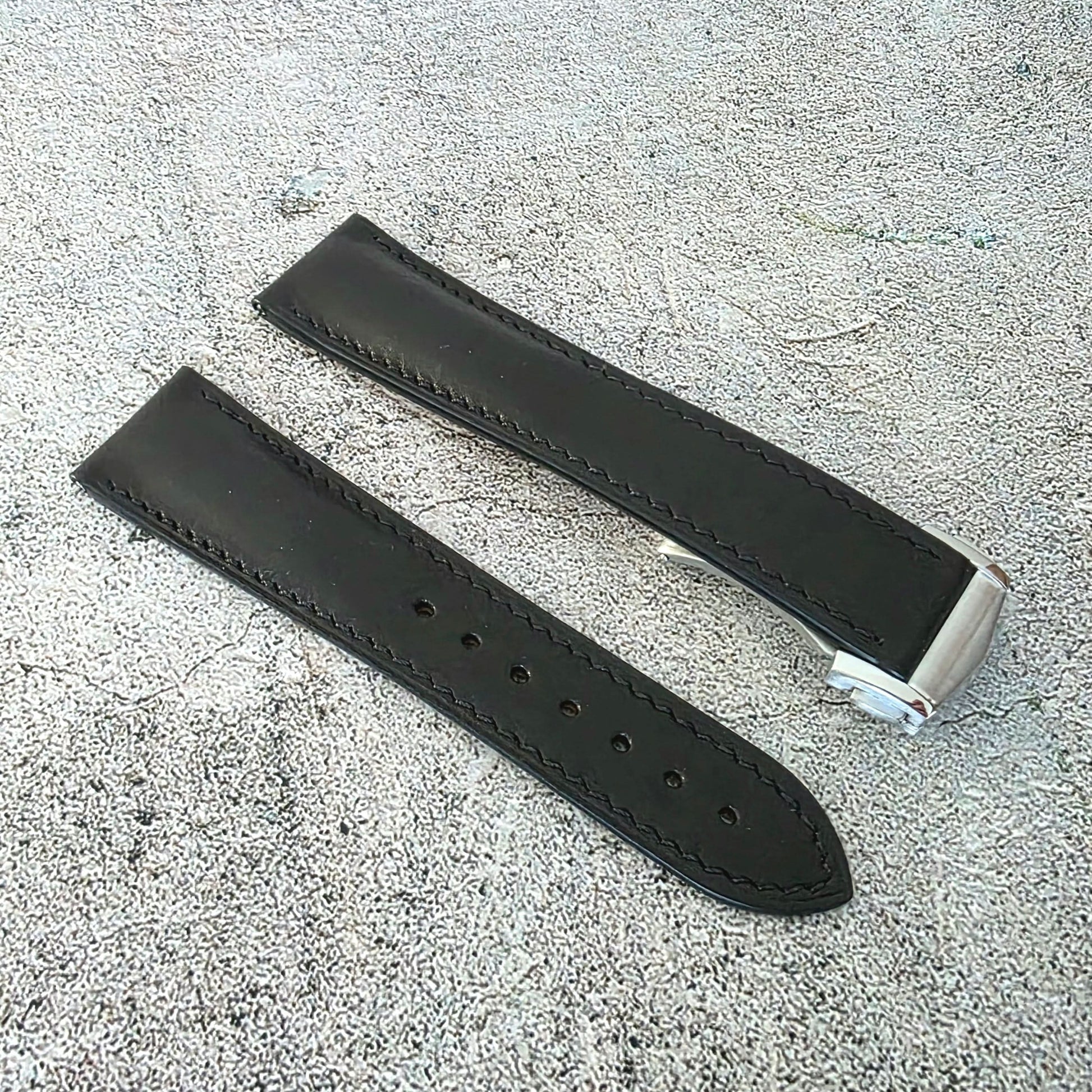 French Novanappa Leather Deployant Strap 19mm 20mm 21mm 22mm Black